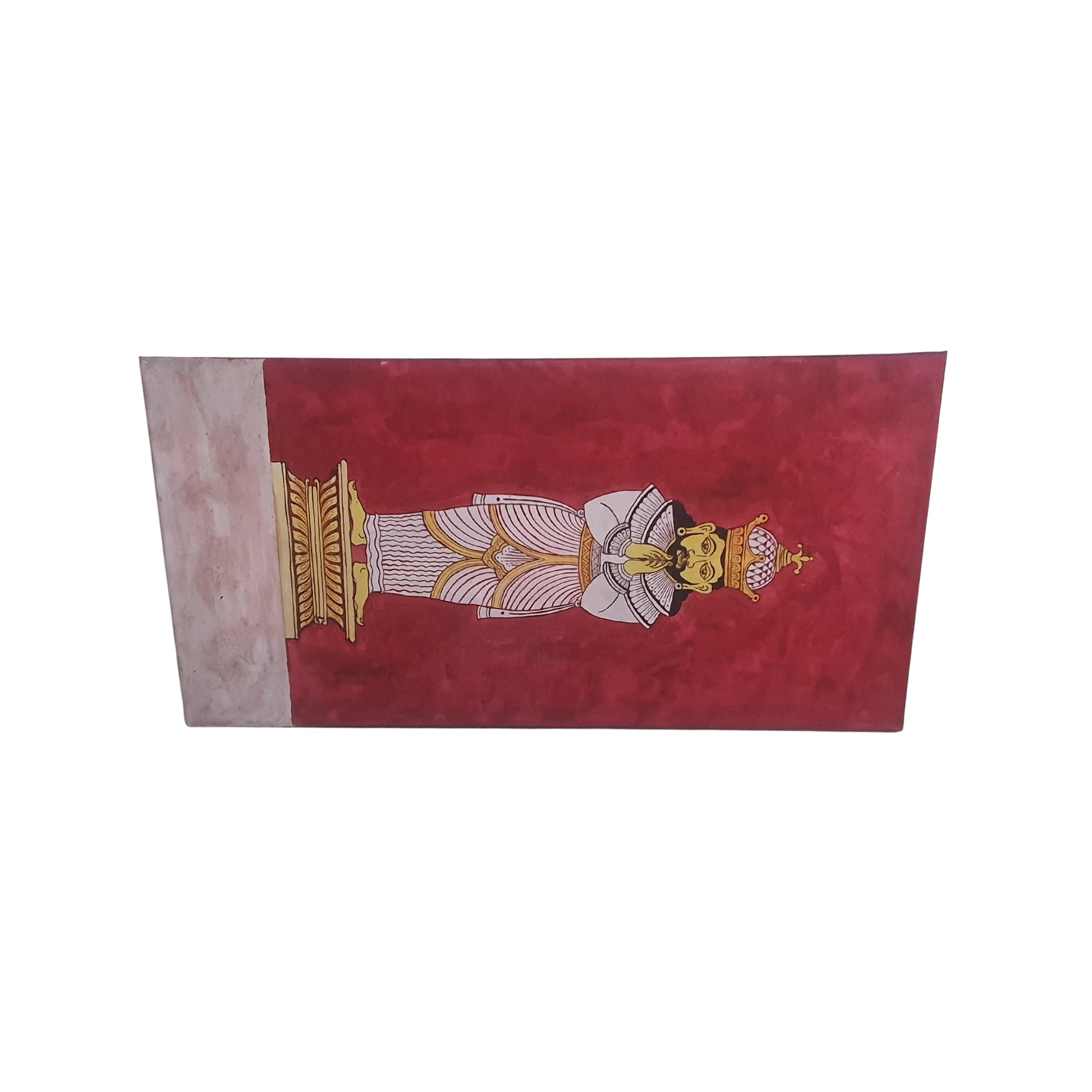 Celebrate the essence of Sri Lankan hospitality with this stunning wall art featuring the traditional Ayubowan greeting — a gesture symbolizing welcome, respect, and blessing. The artwork portrays a finely detailed figure standing gracefully with folded hands, wearing traditional attire that reflects the island’s cultural elegance. Set against a deep red background, it radiates warmth and spiritual harmony, making it an eye-catching addition to any home, office, or reception space.