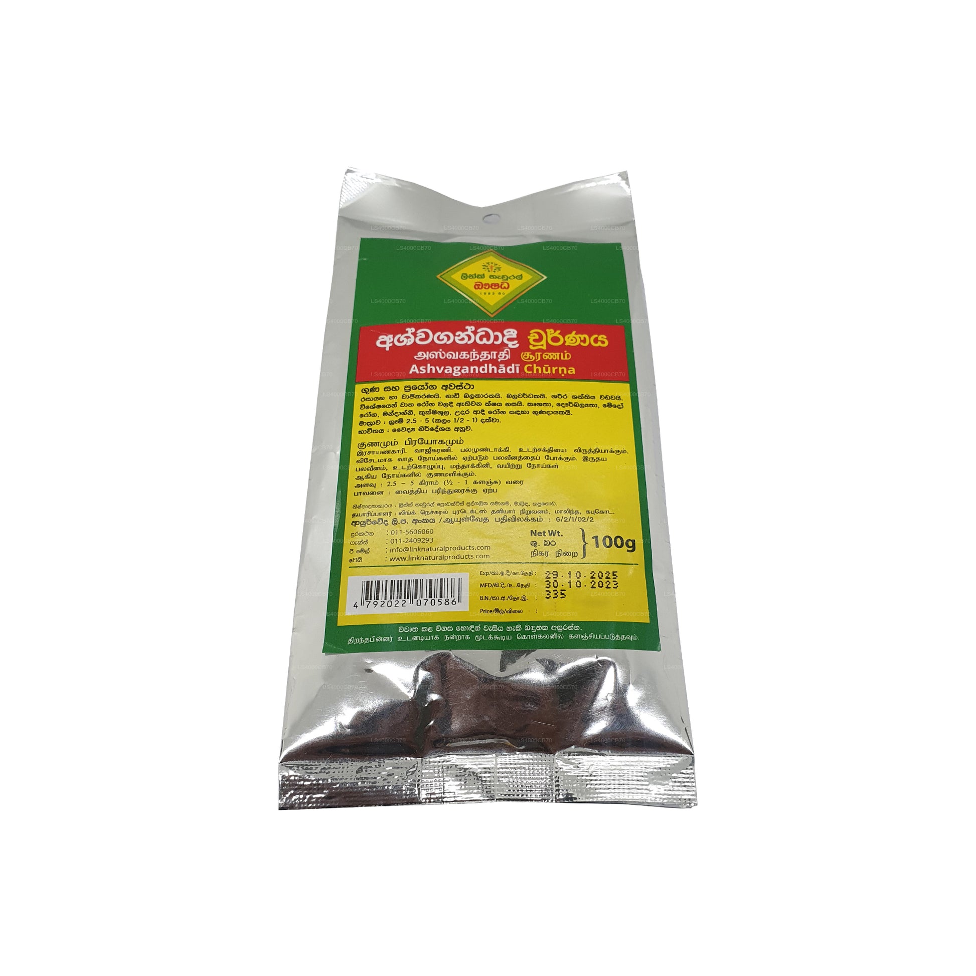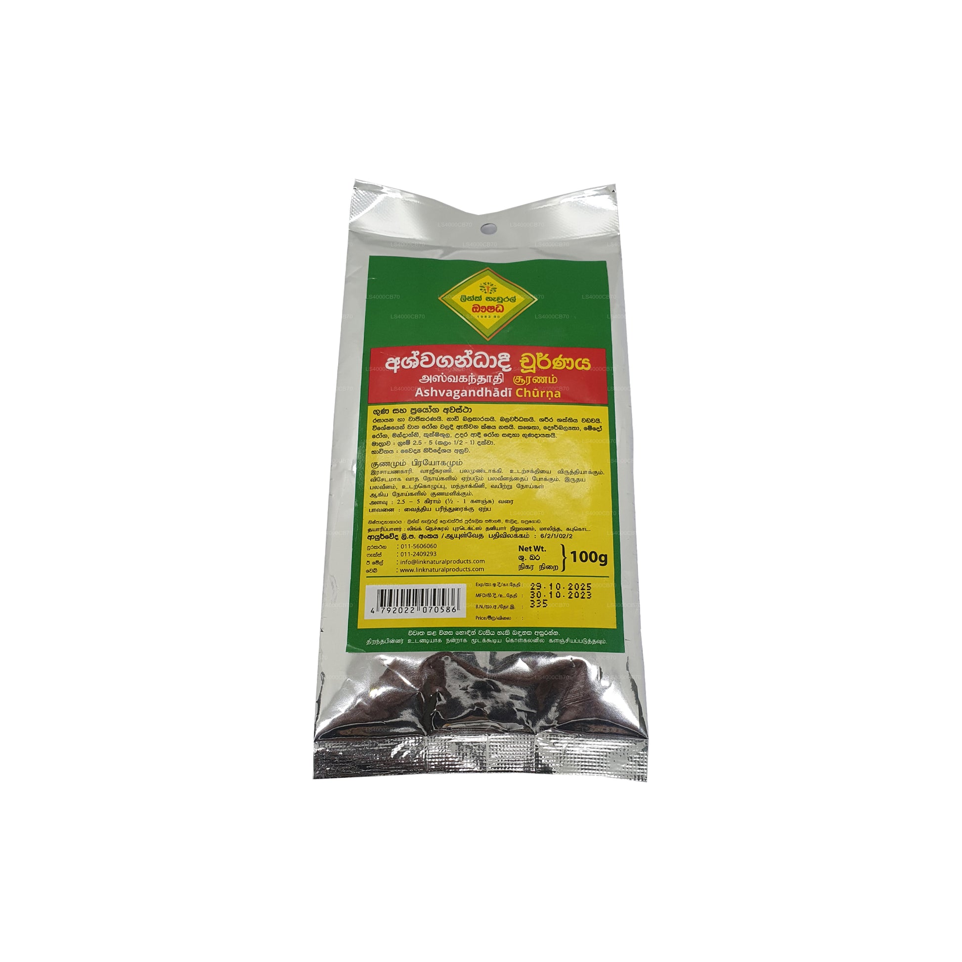 Link Ashvagandhadee Choorna je ajurvédský bylinný prášek primárně obsahující Ashwagandhu (Withania somnifera), známý svými adaptogenními vlastnostmi. Pomáhá zvládat stres, zvyšuje vitalitu, zvyšuje energii, podporuje kognitivní funkce a podporuje hormonální rovnováhu. Obvykle se konzumuje orálně, používá se ke zmírnění symptomů souvisejících se stresem a ke zlepšení celkové pohody