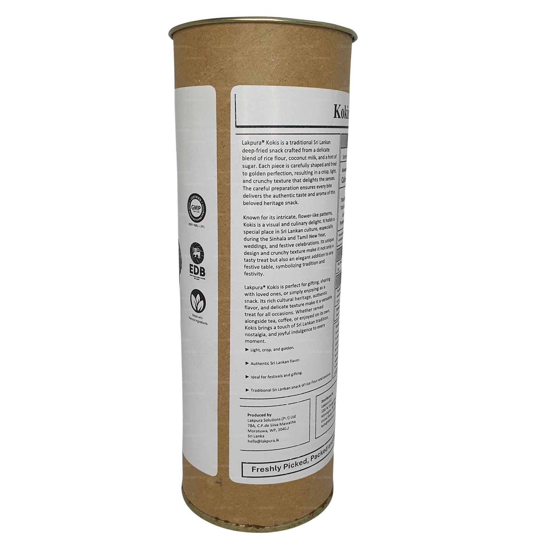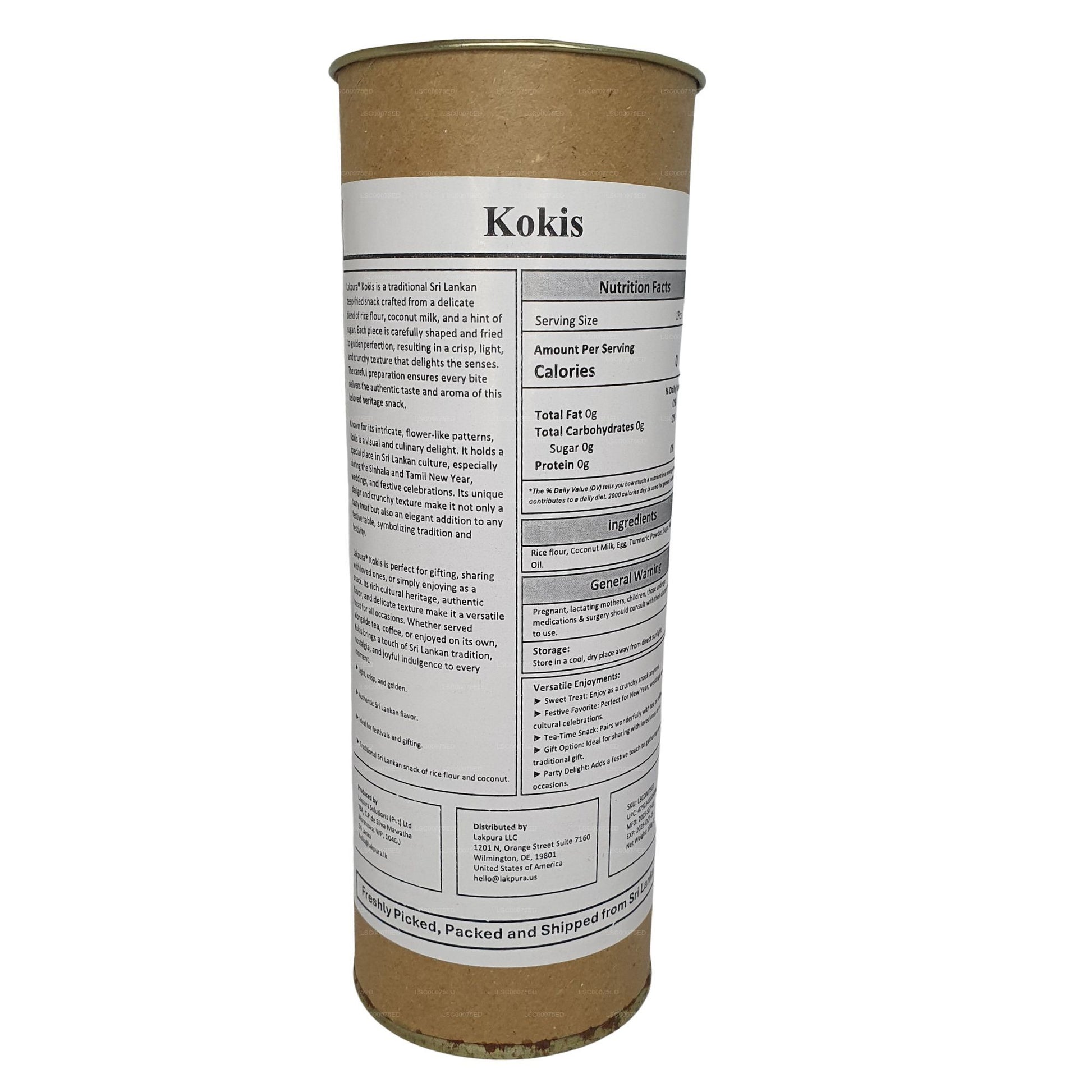 Denne visuelt tiltalende gyldengule snack er en favorit blandt mange lokale, især børn, mens besøgende fra hele verden bestemt ikke siger nej, når den serveres under festlighederne. Vores Lakpura Kokis fremstilles i friske batches og sendes i overensstemmelse med sundheds- og sikkerhedsstandarder for at give dig et perfekt produkt. Den bør opbevares i lufttætte beholdere, når den er taget ud af pakken.
