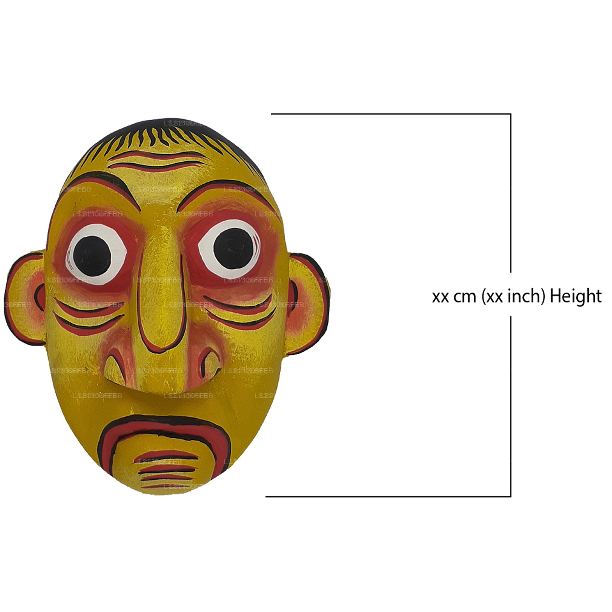 Gulma Sanniya Maske ist eine traditionelle rituelle Maske aus Sri Lanka, die den Dämon darstellt, von dem angenommen wird, dass er Magenerkrankungen wie Blähungen und Bauchschmerzen verursacht. Die aus Kaduru-Holz handgefertigte Maske hat ein gelbes Gesicht mit übertriebenen Gesichtsausdrücken — gewölbte Augen, gerunzelte Brauen und rote Akzente —, um Unwohlsein und Krankheit widerzuspiegeln. Sie wird bei Heilritualen wie Sanni Yakuma verwendet