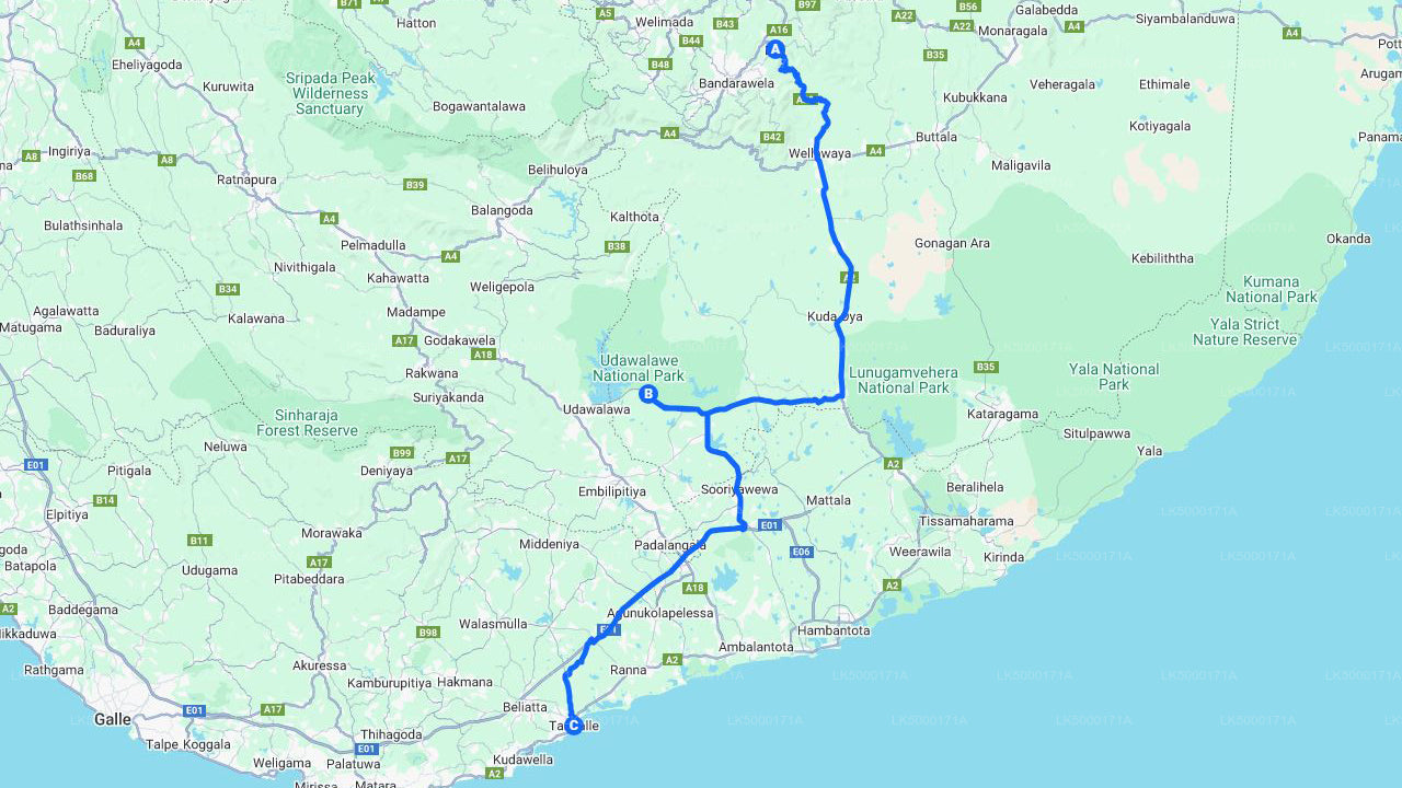 Dieser private Transfer bietet eine reibungslose Reise von Ella nach Tangalle , mit einer aufregenden Udawalawe- Safari dazwischen. Erleben Sie Sri Lankas abwechslungsreiche Landschaften, von nebligen Hügeln über unberührte Wildnis bis hin zu ruhigen Stränden. Beobachten Sie Elefanten , Krokodile und exotische Vögel, bevor Sie Tangalle, einen ruhigen Küstenort, erreichen.