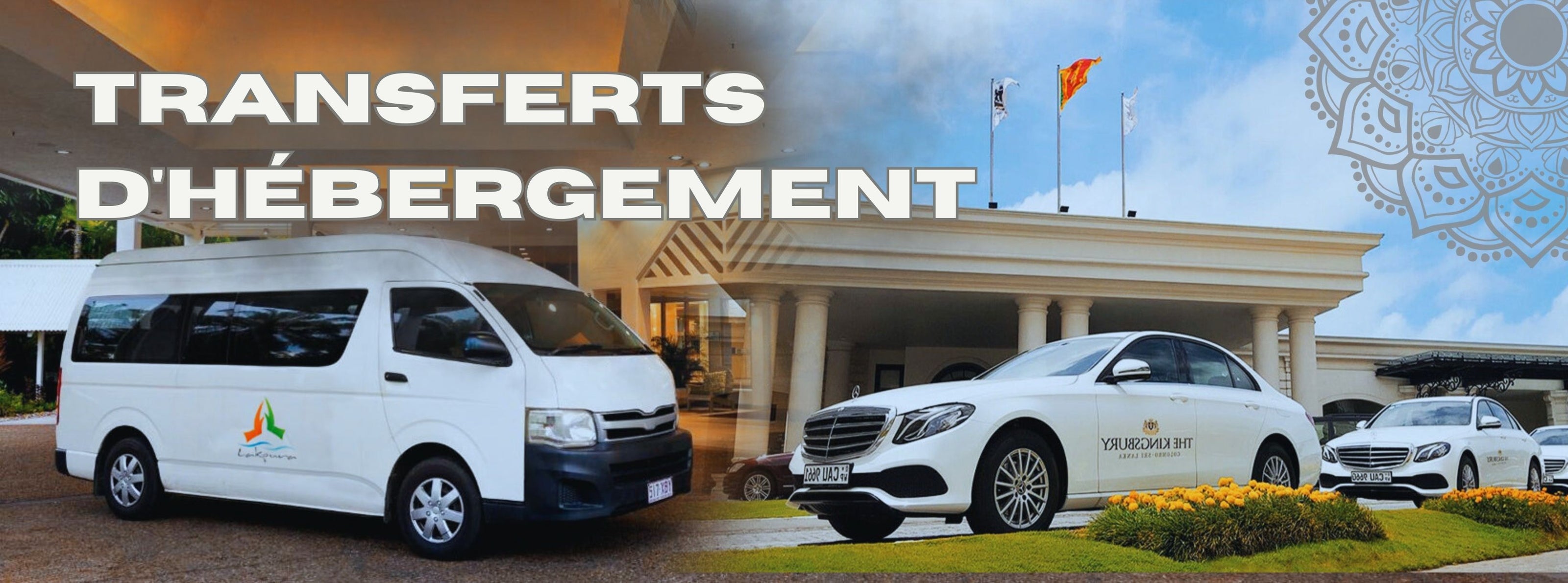Transferts d'hébergementLes transferts d'hébergement au Sri Lanka offrent un confort optimal pour se rendre des aéroports à Colombo, Galle, Kandy, aux plages, aux réserves fauniques et aux régions culturelles.