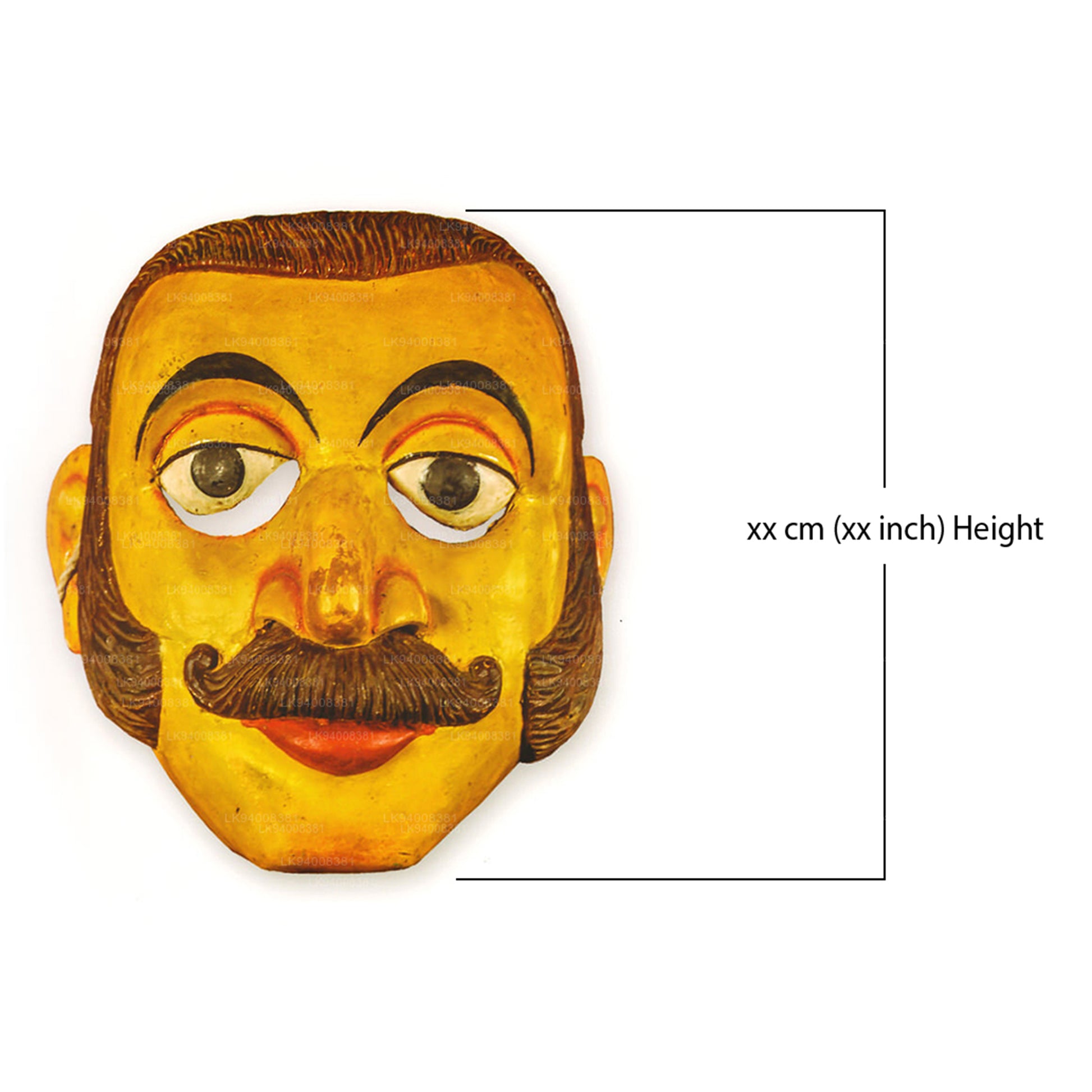 Evoking fear and loyalty among the common people and its comic character are displayed by the creation of this mask with its moustache. Behind him following him is a character called Liyanappu (clerical official). Though these characters have masks that are similar, yet the two different characters can be identified separately and have been created as such.