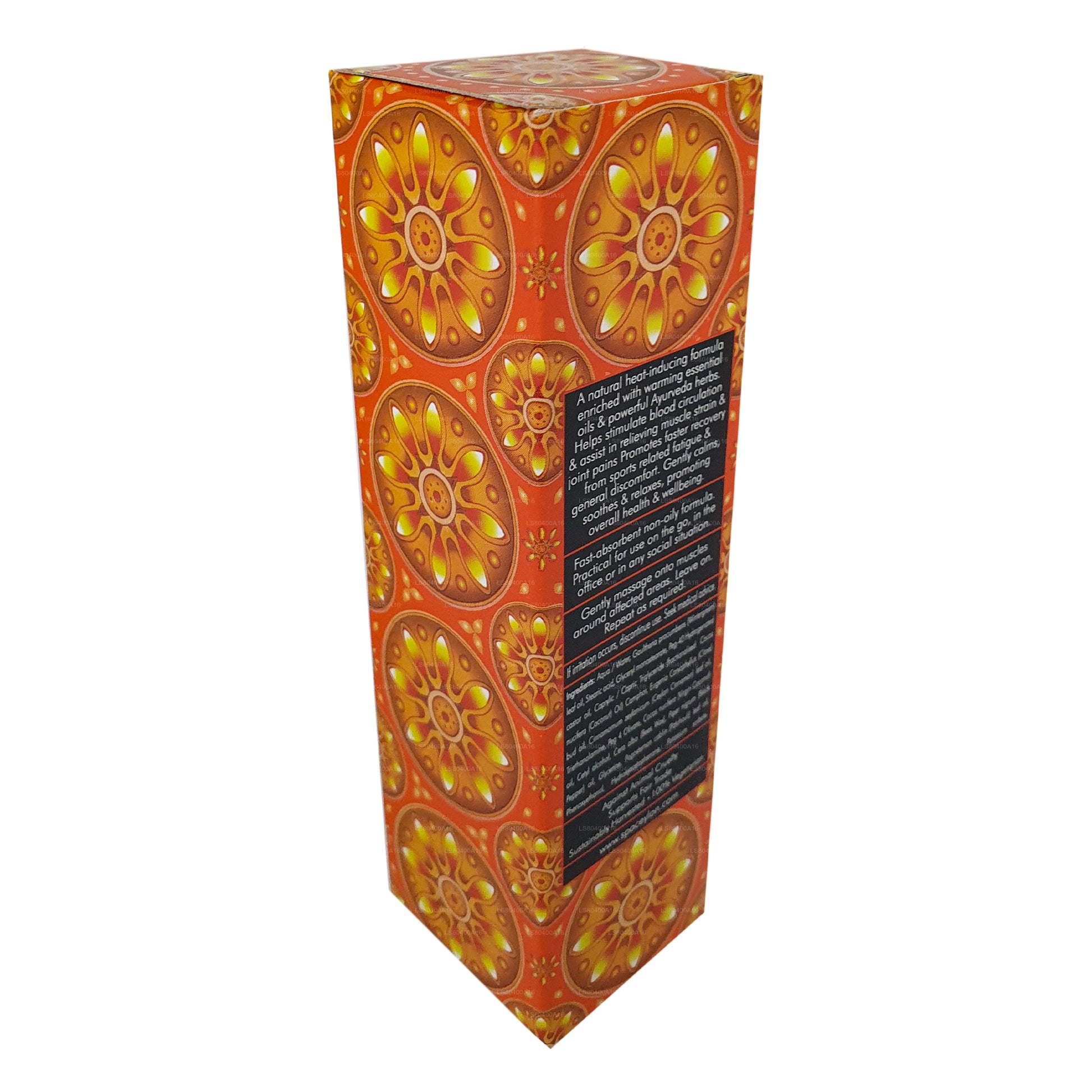Una formula naturale che induce calore arricchita con oli essenziali riscaldanti e potenti erbe ayurvediche. Aiuta a stimolare la circolazione sanguigna e ad alleviare la tensione muscolare e i dolori articolari. Promuove un recupero più rapido dalla stanchezza legata allo sport e dal disagio generale. Calma delicatamente, lenisce e rilassa, promuovendo la salute e il benessere generali.