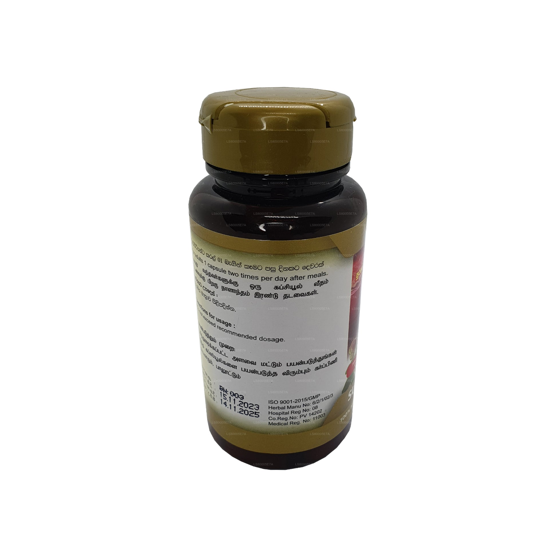 (SKU: LS80005E7A) Sethsuwa Super Man is a dietary supplement available in a 60-capsule bottle, formulated to support men's health and vitality. With a blend of natural ingredients, including herbal extracts and essential nutrients, it aims to enhance energy, stamina, and overall well-being. Users are typically advised to take capsules daily with meals. Before incorporating Super Man consulting with a healthcare provider is recommended for those who with existing health conditions or on medications. The brand emphasizes quality ingredients, and adherence to recommended dosage guidelines is crucial for safe and effective use, making Super Man a convenient addition to men's overall health.