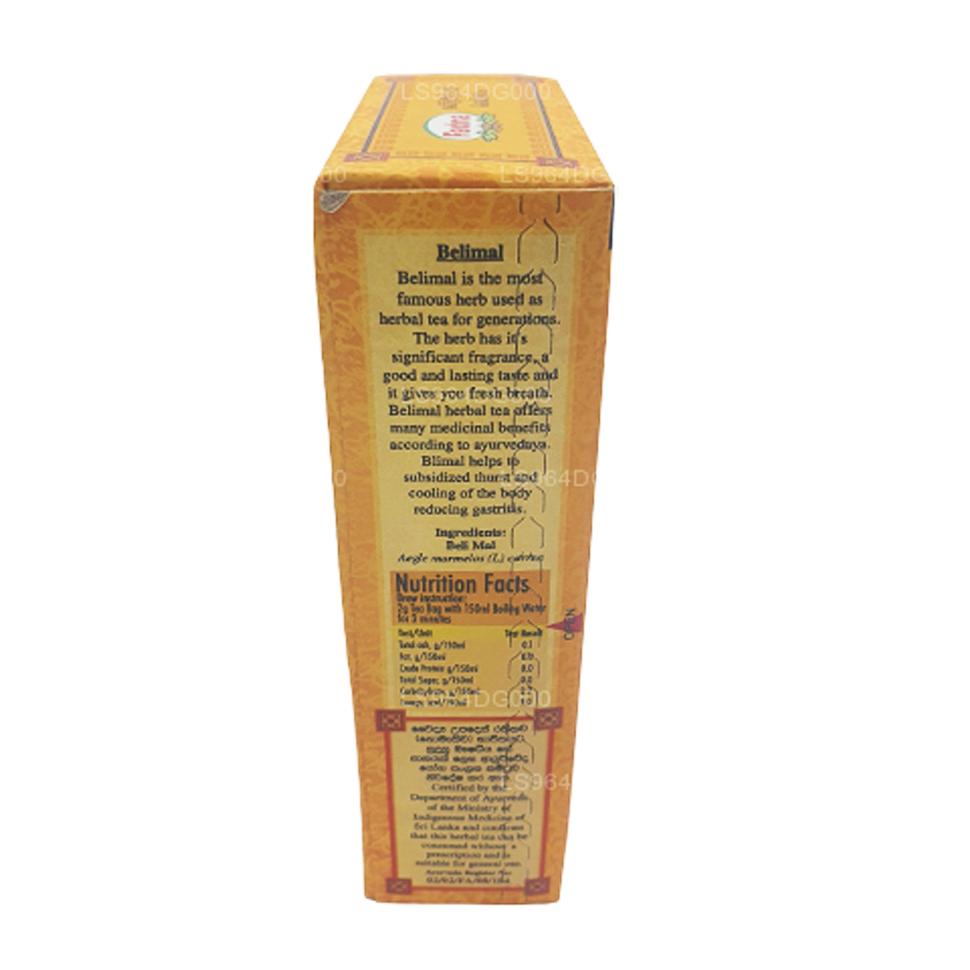 (SKU: LS964DG000) Beli Mal jest najbardziej znanym ziołem używanym jako herbata ziołowa od pokoleń. Zioło ma swój znaczący zapach, dobry i trwały smak oraz daje świeży oddech. Beli Mal jest najbardziej znanym ziołem używanym jako herbata ziołowa od pokoleń. Zioło ma swój znaczący zapach, dobry i trwały smak oraz daje świeży oddech. Całkowicie naturalna bezpłatna kofeina Beli Mal Herbata ziołowa oferuje wiele korzyści leczniczych Według Ayurvedaya Beli Mal Herbata ziołowa pomaga w łagodzeniu kołatania serca, zgagi (zapalenie żołądka) Niestrawność (zaburzenia trawienia), zaburzenia jelit, wymioty i zaparcia, a także pomaga w łagodzeniu kataru astmy i gorączki.
