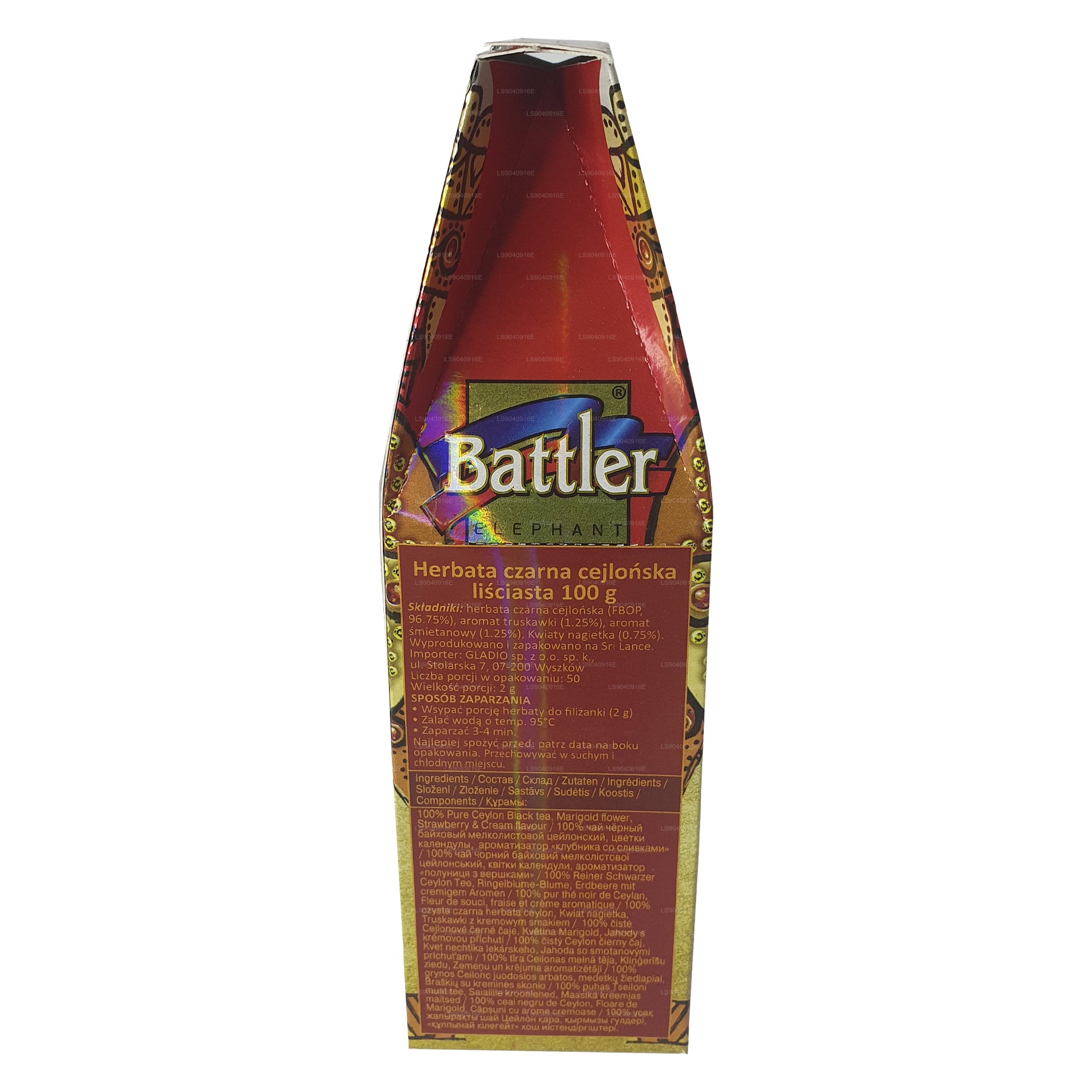 Battler Strawberry with Cream (100g) Tin Caddy is a premium blend of pure Ceylon black tea with the delightful flavors of strawberry and cream. Sourced from low-grown, small leaves in Sri Lanka, this tea offers a rich, robust flavor profile with a refreshing fruity aroma. The black dry leaves promise a delicious infusion, perfectly balancing the boldness of Ceylon black tea with sweet, creamy notes of strawberry. Packaged in an elegant tin caddy, this 100g blend is ideal for any time of day, providing a unique and indulgent tea experience.