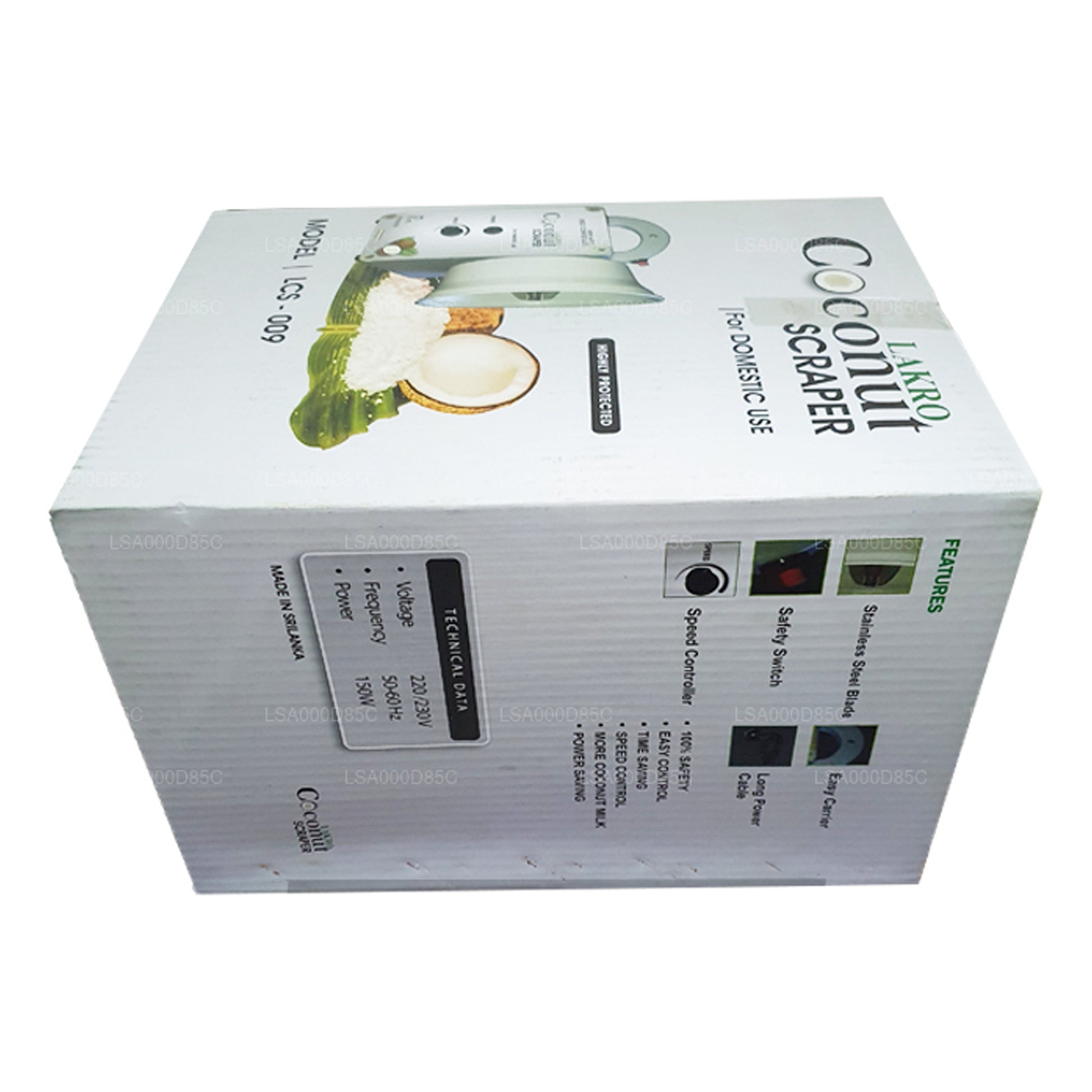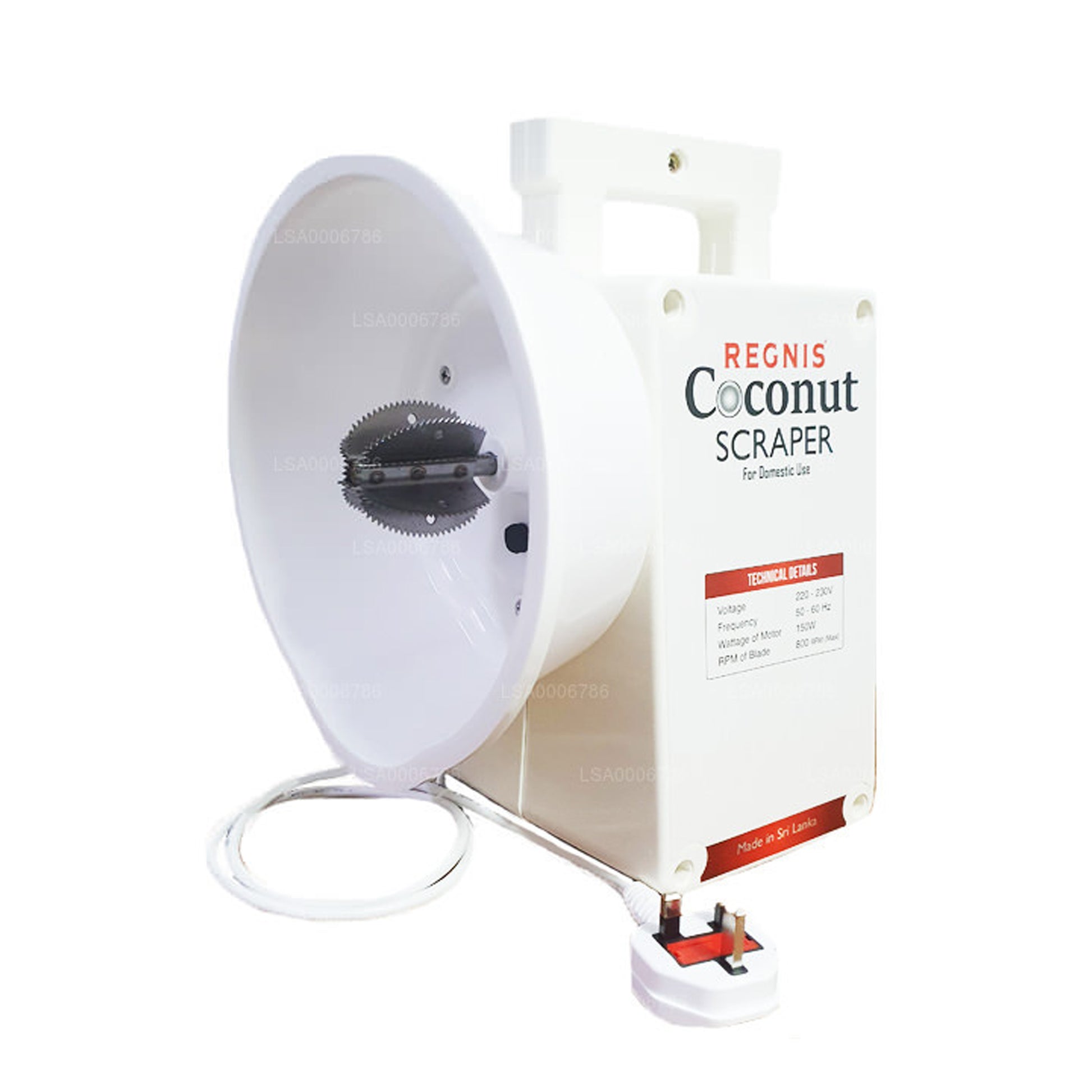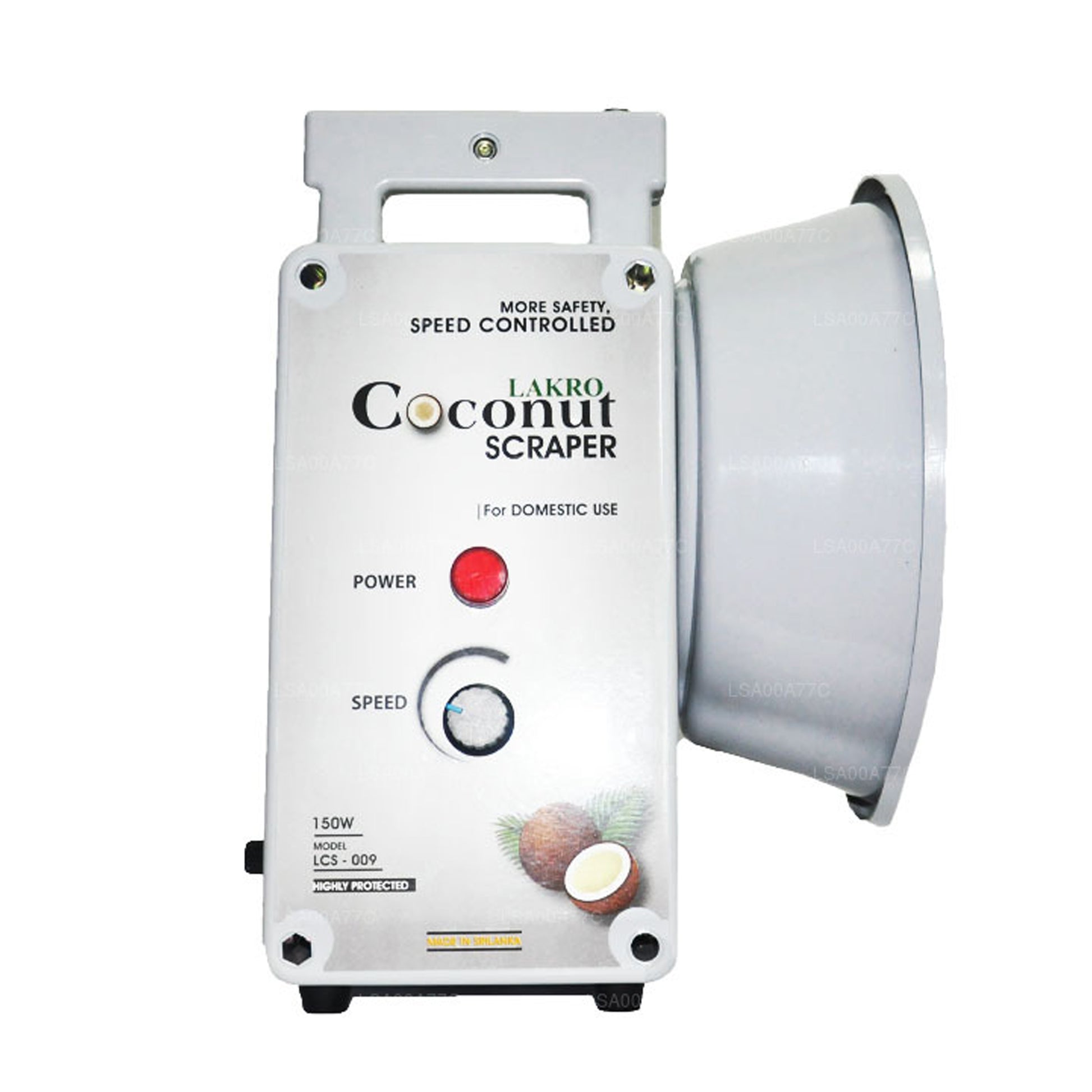 A coconut shredder or scraper which is ideal for domestic use and completely made in Sri Lanka making it authentic and handy. The machine has the power to process one coconut per minute which is perfect for households who are always in a hurry to get the cooking done. The Lakro domestic electric coconut scraper consists of a speed controller, safety control switch and power indicator.