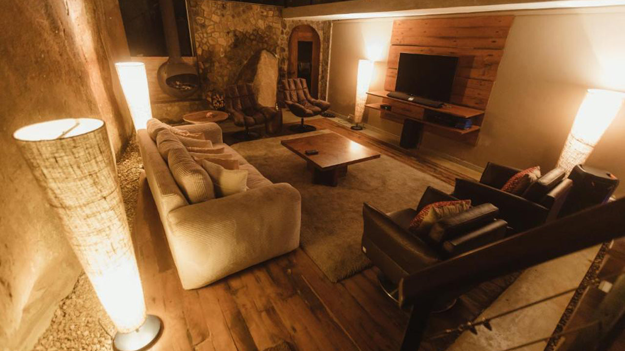 The Cavern features a cozy lodge with three well-appointed bedrooms and four bathrooms. The bedrooms are furnished with comfortable beds and the necessary linens, while the bathrooms come equipped with towels and essential amenities. The lodge also includes a fully equipped kitchen, a dining area, and a terrace offering breathtaking mountain views. For added convenience, guests can request additional towels and bed linen for an extra charge.