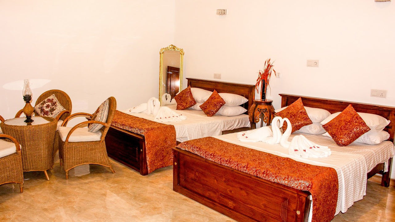 Accommodation:Galle House offers spacious and comfortable accommodation with four cozy bedrooms, each featuring a double bed. The villa also includes a living room with sofa beds, perfect for relaxing. Each room is equipped with modern amenities such as air conditioning, Wi-Fi, and an LCD TV. Guests can enjoy a private balcony or patio with beautiful garden views for added comfort.