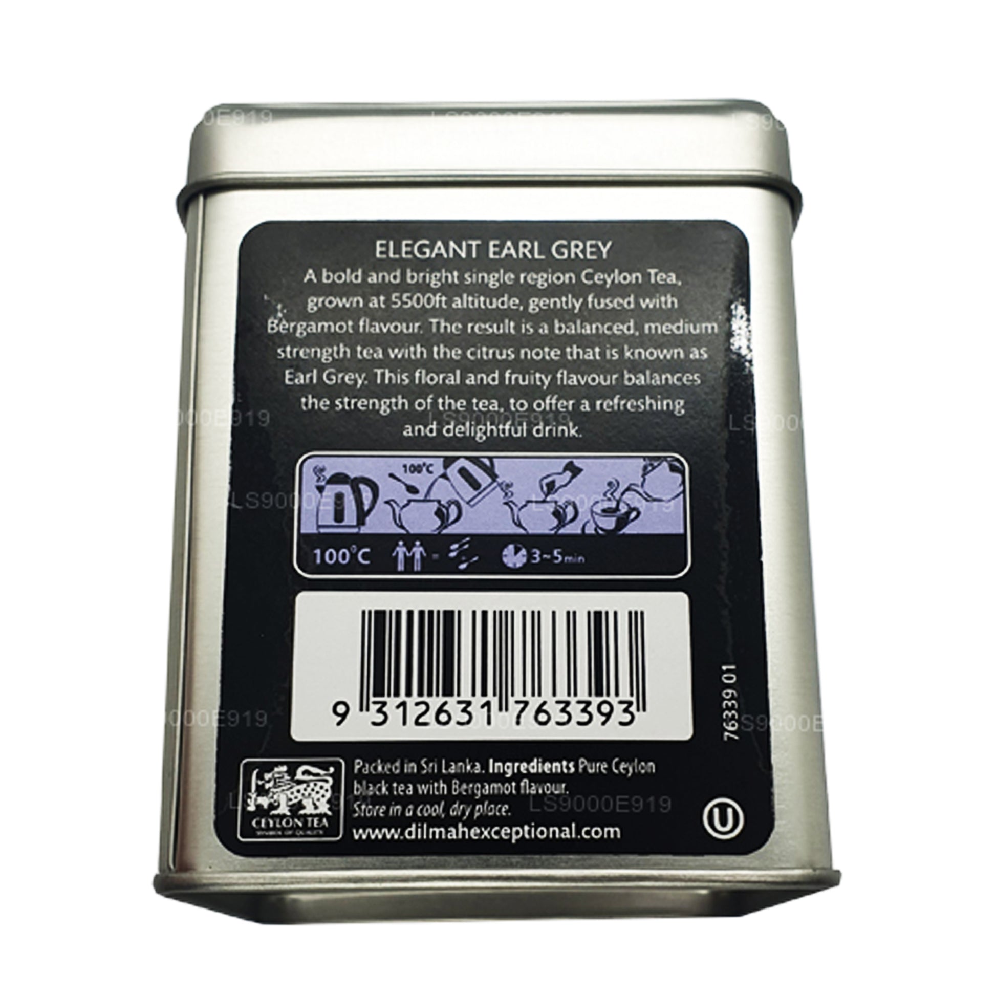 Dilmah Exceptional Elegant Earl Grey, çayın tazeliğini ve aromasını koruyan hava geçirmez bir teneke kutuda 100 gr gevşek yaprak çayı içerir.